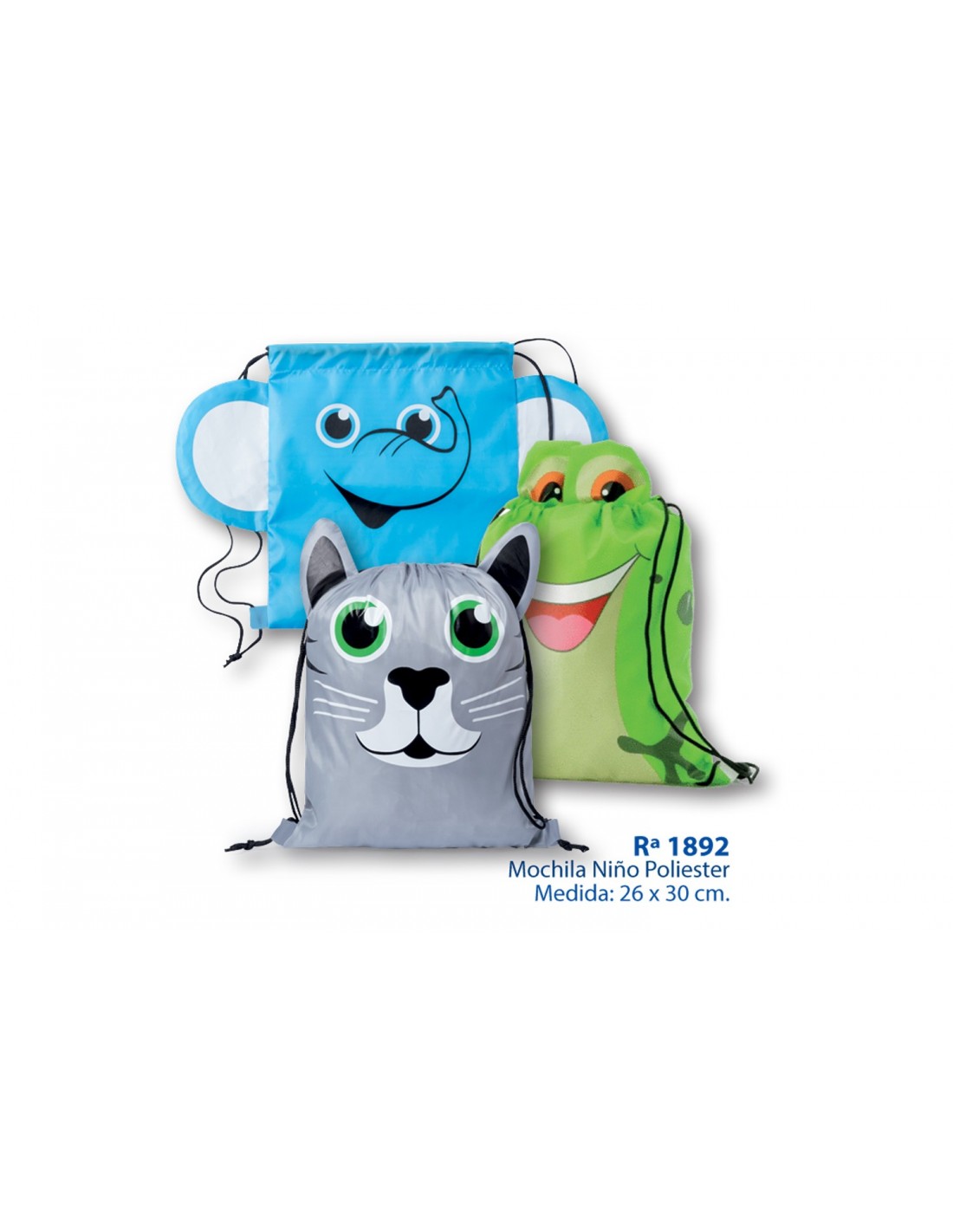 Bolsa mochila de niño con diseño de aniimales. Con cuerdas autocierre en color negro - Poliéster 210T